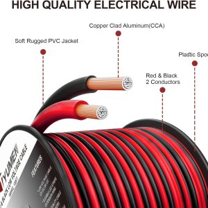 18 Gauge Wire 100FT, 18/2 AWG Red Black Hookup Electrical Wire LED Strips Extension Cord 12V/24V DC Cable, 18AWG 2 Conductors Flexible Wire for LED Ribbon Lamp Tape Lighting