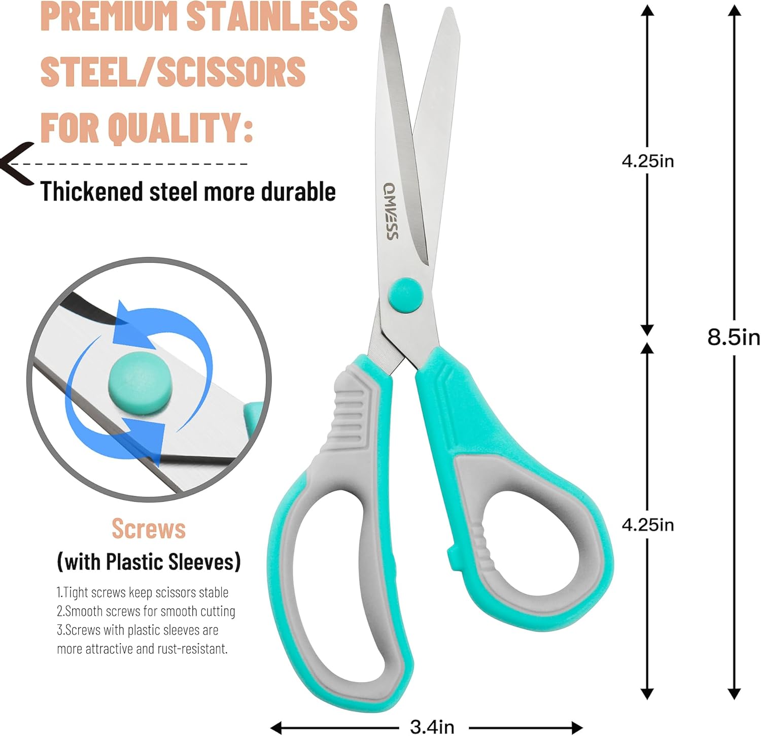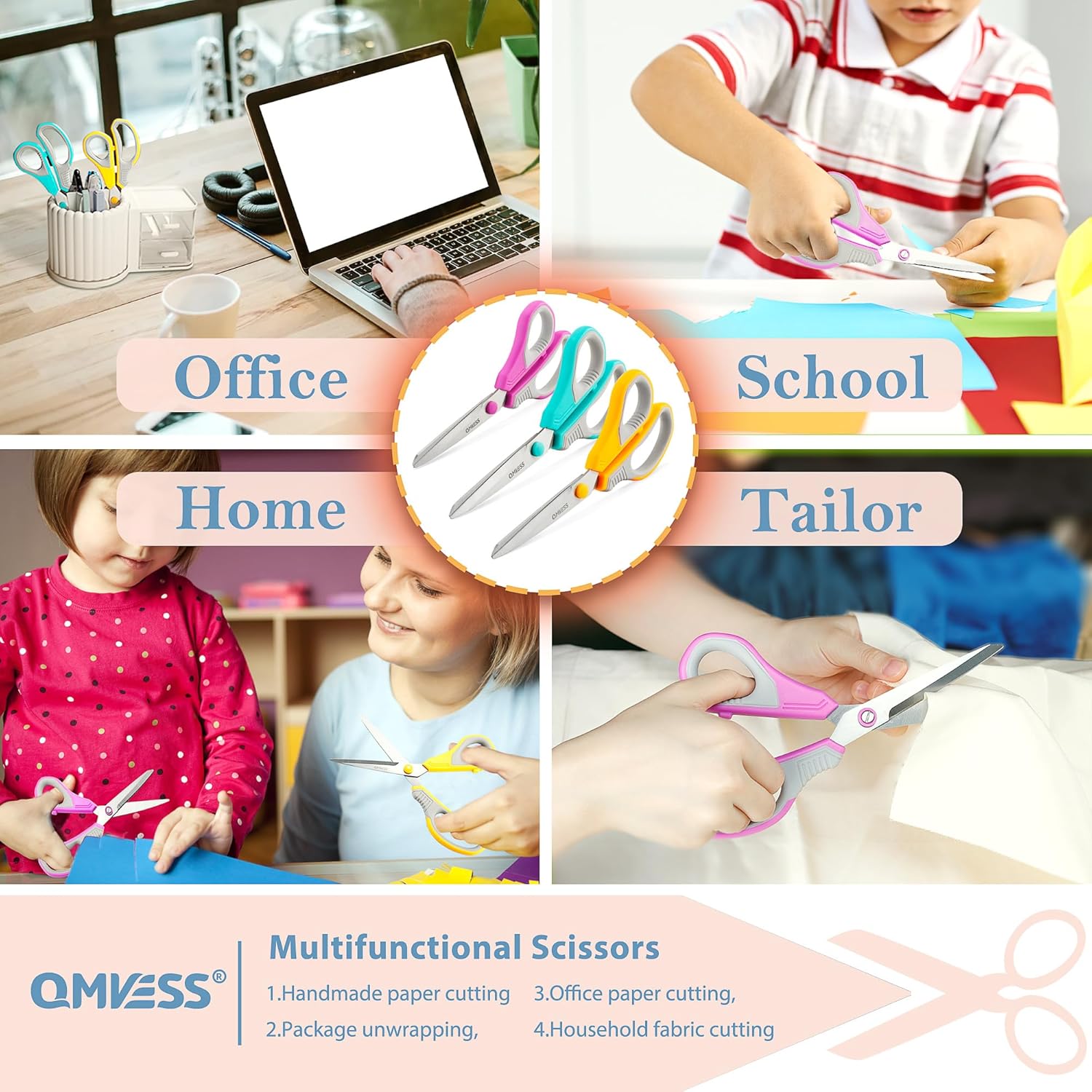 QMVESS 8.5″ Scissors All Purpose 3 Pack, Ultra Sharp 2.5mm Thick Blade Scissors for Office, Professional Ergonomic Comfort Grip Scissors for Office School Home Fabric DIY Craft Cutting General Use